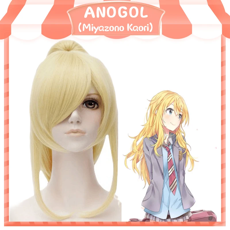 Product Name: Anogol Lange Rechte Uw liggen in April Miyazono Kaori Goud Blond Clip Paardenstaart Synthetische Cosplay Pruik Voor Halloween