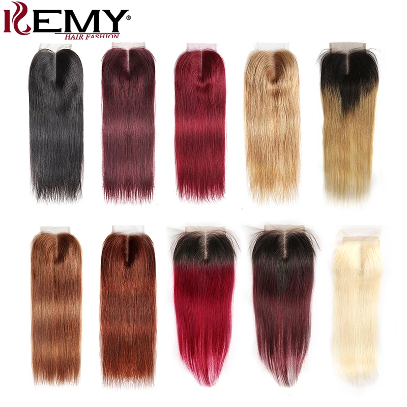 Product Name: 4*4 Braziliaanse Vetersluiting Kemy Haar 100% Non Remy Straight Menselijk Haar Gratis Midden Drie deel Zwitserse Kant Sluiting Gratis Verzending