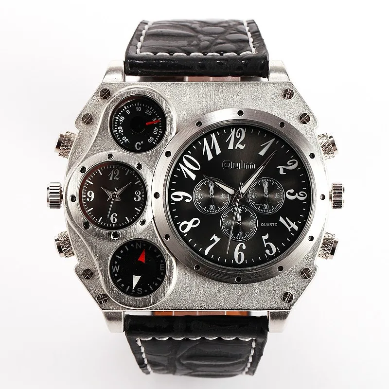 Product Name: Oulm 1349 Reloj Hombre Mannen Dual Beweging Sport Militaire Horloge Met Kompas Thermometer Decoratie Mannelijke Klok Relogio Masculino
