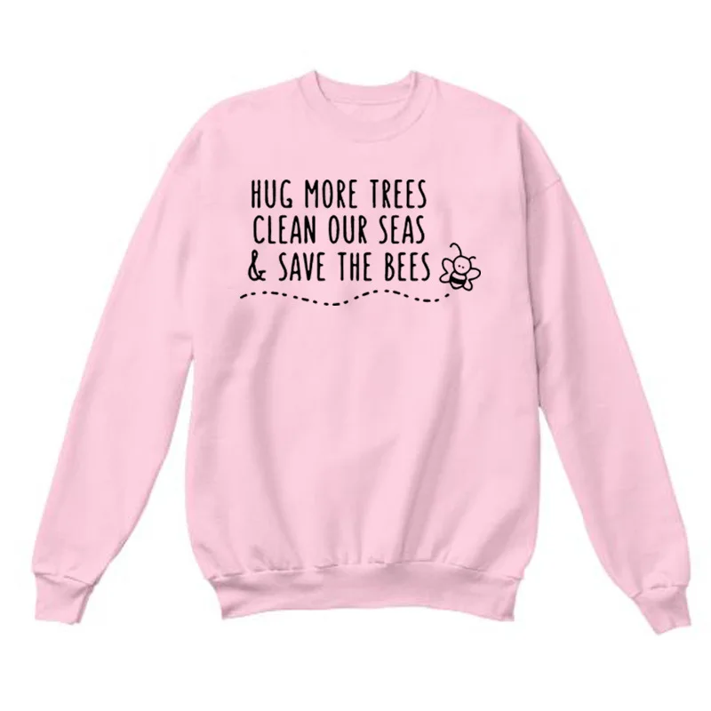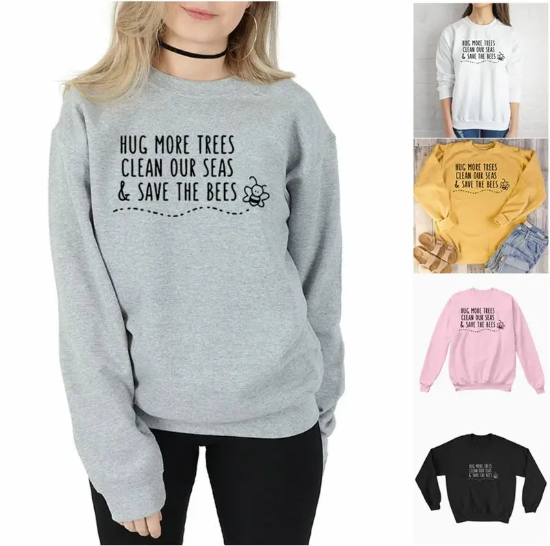 Product Name: Omhelzing meer bomen om schoon onze oceanen en besparen bijen vrouwen sweatshirts Effen kleur ronde hals truien Straat kleding vrouwen