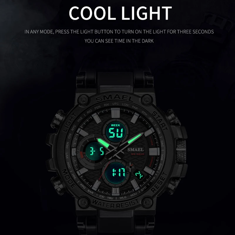 Product Name: Mannen Militaire Horloge 50m Waterdicht Horloge LED Quartz Klok Sport Horloge Mannelijke relogios masculino 1803 Smael Horloge Mannen Shock