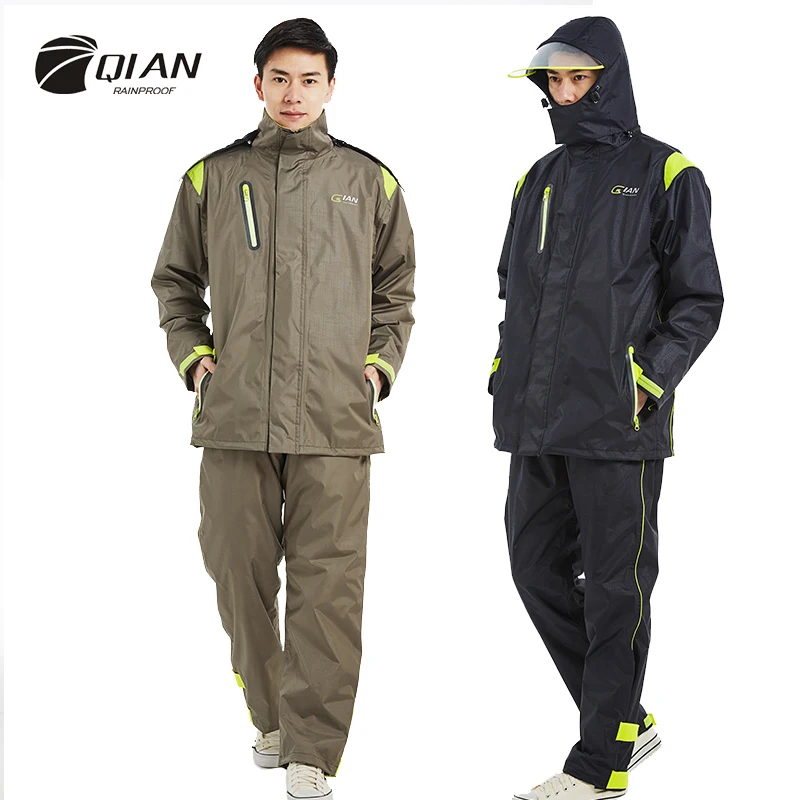 Special Offer QIAN Merk Ondoordringbare Regenjassen Vrouwen Mannen Jas Broek Set Volwassenen Regen Poncho Dikkere Politie Regenkleding Motorfiets Regenpak Discount 50% Today!