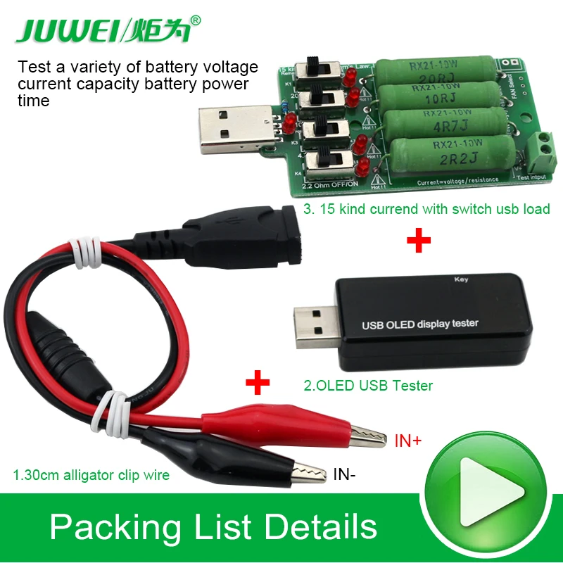 Product Name: Batterij Usb Tester Dc Voltmeter Amperemeter 18650 Capaciteit Meter Elektronische Belasting Ontlading Weerstand Alligator Clips Crocodile Draad