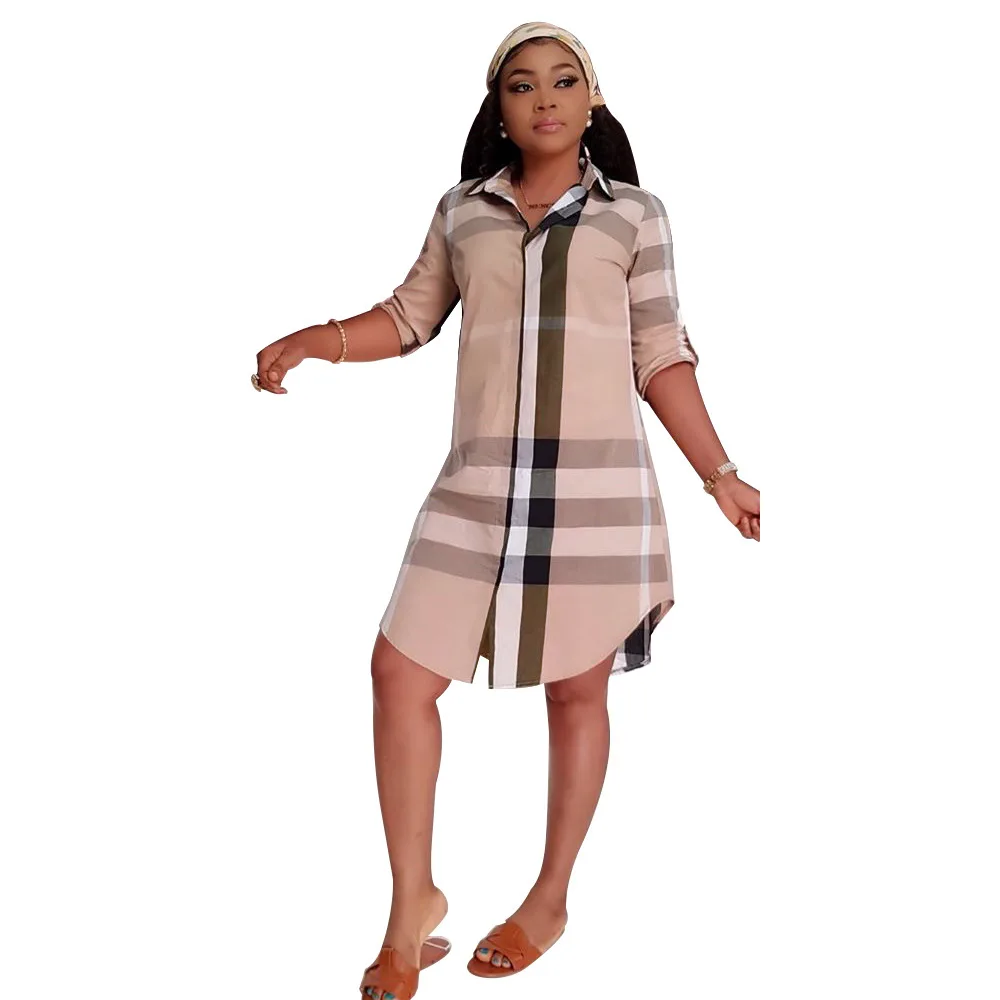 Product Name: Lente Zomer Vrouwen Jurk Sexy Party Jurken Vestidos Plus Size Classic Plaid Print Losse Shirt Jurk Casual