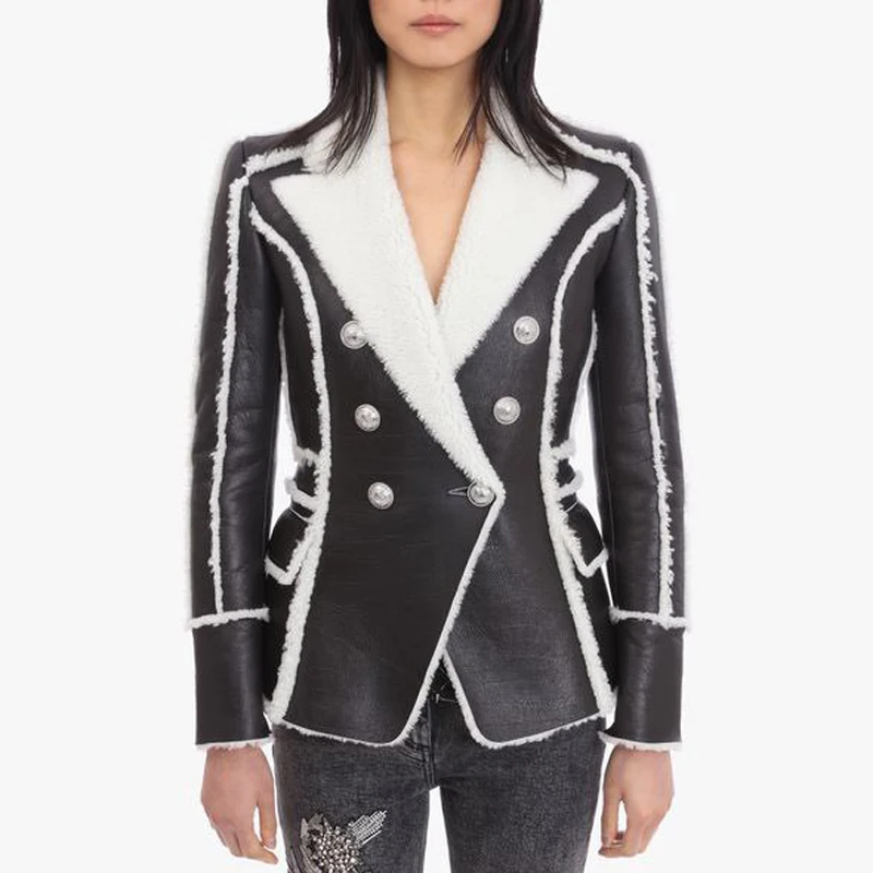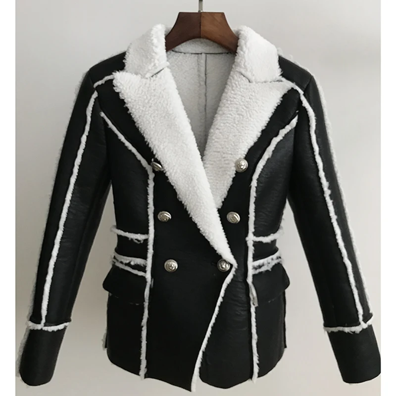 Product Name: HOGE KWALITEIT 2019 Nieuwste Winter Designer Jas vrouwen Classic Leeuw Knoppen Bont Voering Synthetisch Leer Blazer Jas