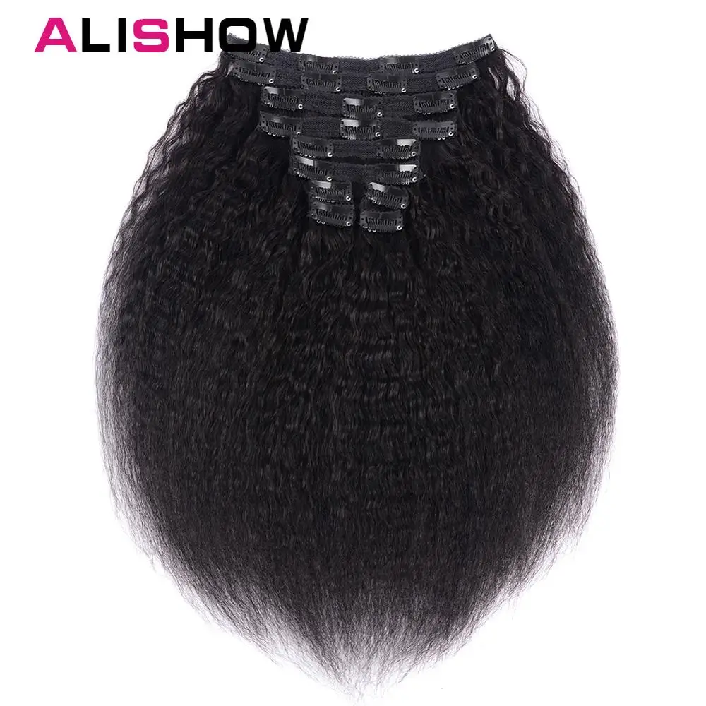 Product Name: Alishow Haar Kinky Striaght Clip In Menselijk Haar Uitbreiding 120g Braziliaanse Natuurlijk Haar in Clips Volledige Hoofd Remy Haar natuurlijke Kleur