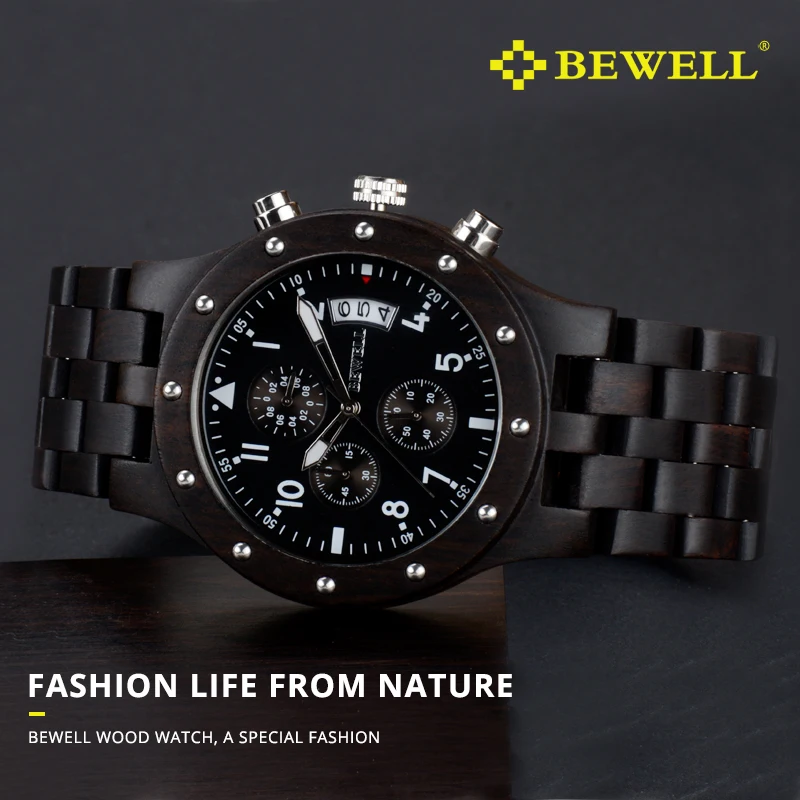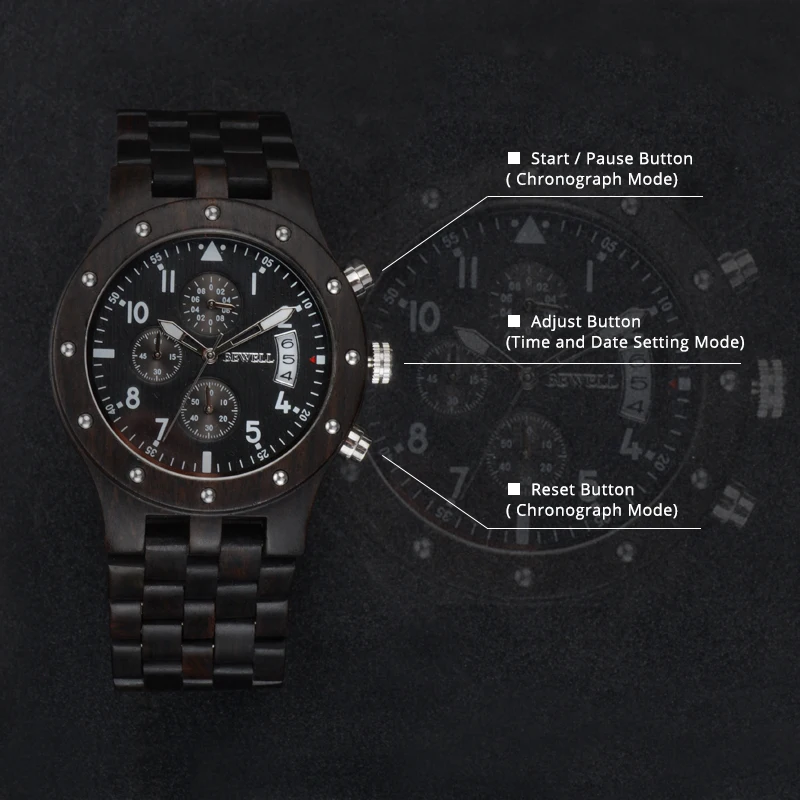 Product Name: BEWELL Luxe Merk Mannen Hout Horloge Man Waterdichte Uur heren Chronograaf Analoge Digitale Quartz Klok Relogio Masculino 109D