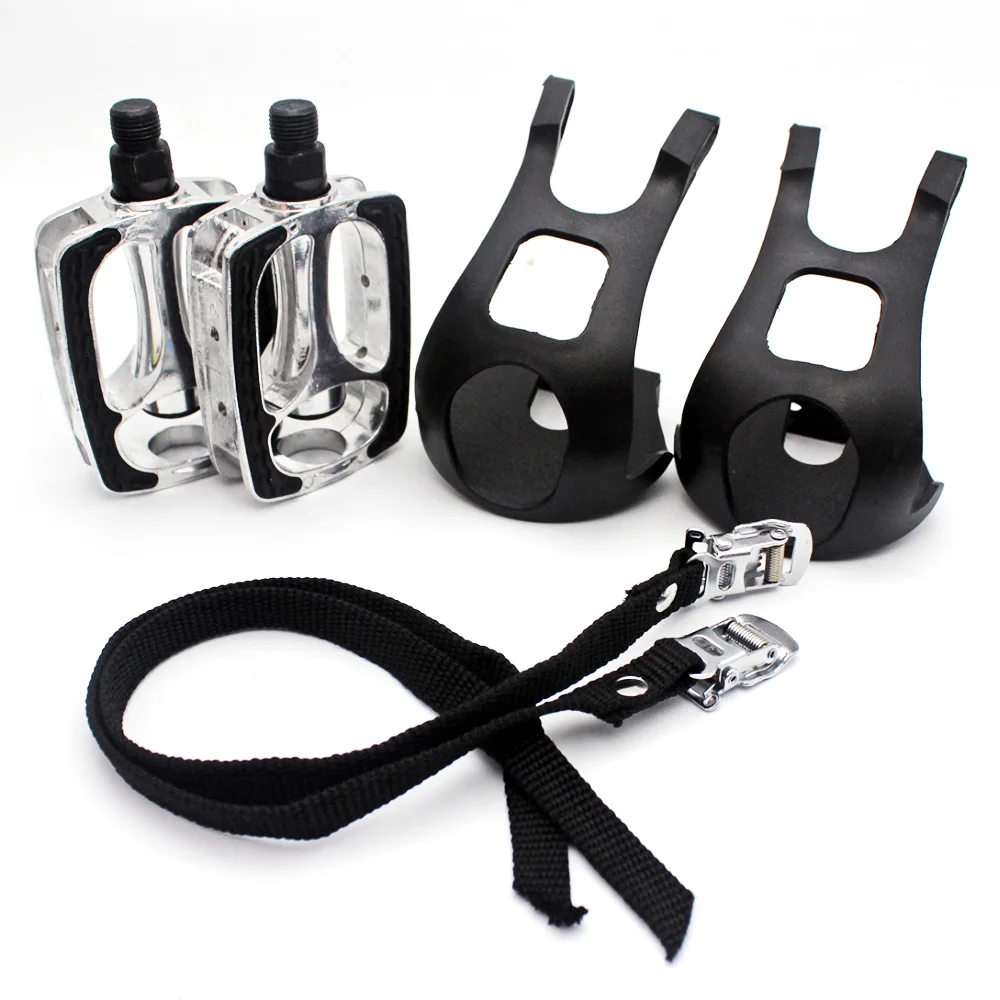 Product Name: Fixed Gear MTB Racefiets Fiets Harnas Pedaal Teen Clips met Bandjes Self lock Pedaal Fietsen fiets pedaal met band spin bike