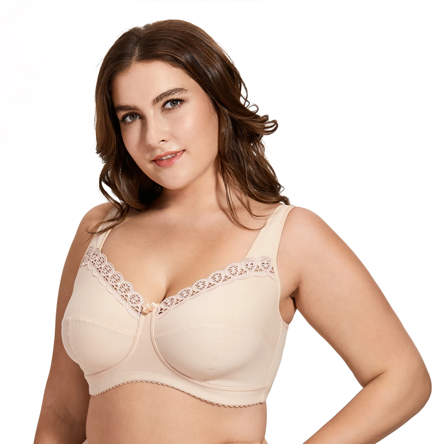 Special Offer Vrouwen Volledige Dekking Kant Plus Size Draadloze Non Padded Katoen Beha B C D E F G H I J Discount 10% Today!