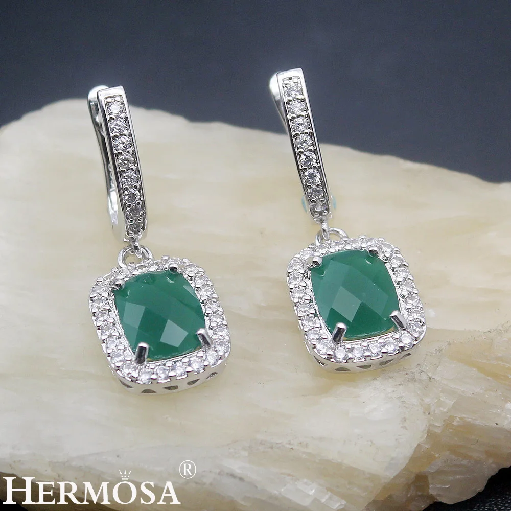 Product Name: Precious Stone Classic Xmas Gift 925 Sterling Zilveren Oorbellen HERMOSA Kerst Groen Sieraden