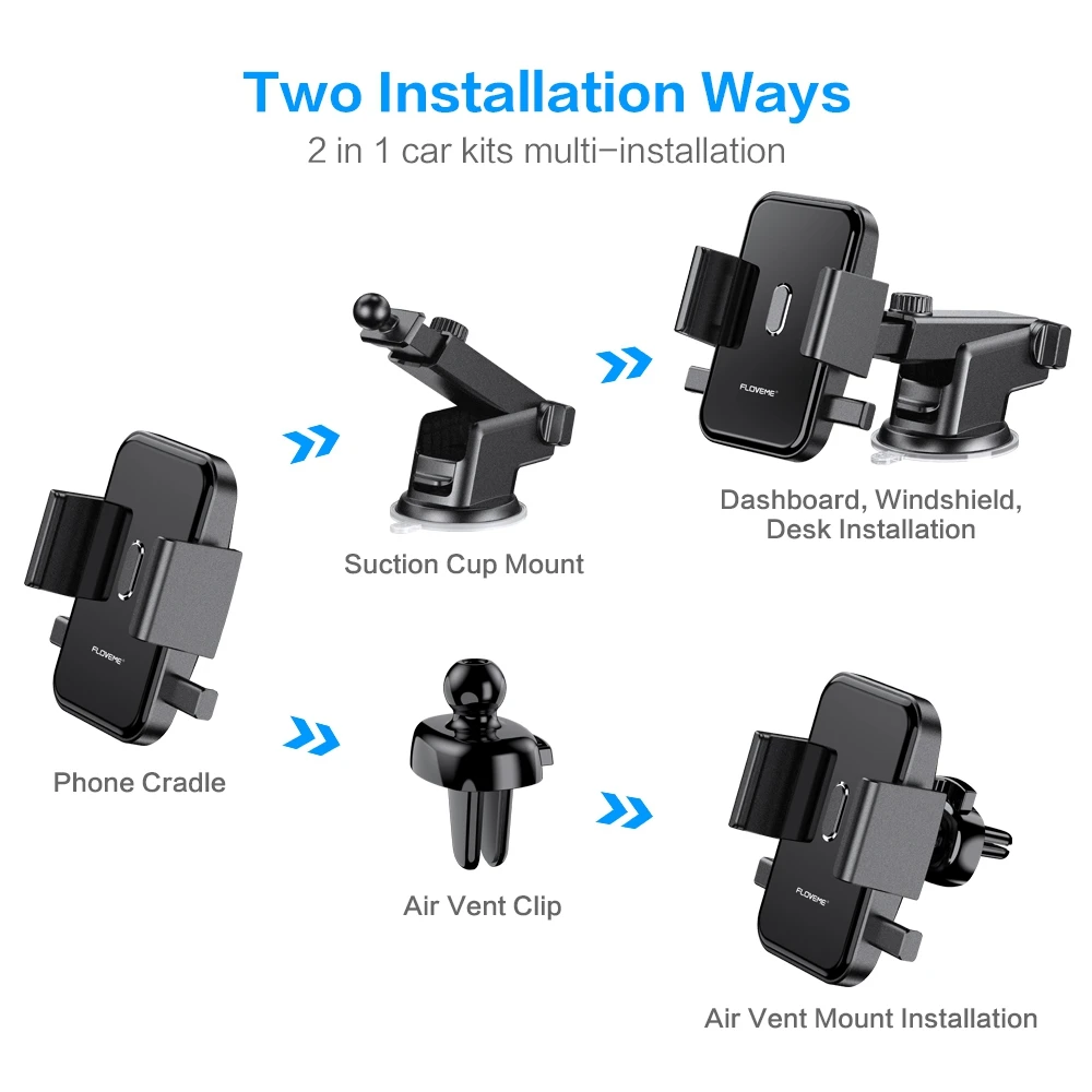Product Name: FLOVEME 2 in 1 Kits Auto Telefoon Houder Air Vent Clip Mount Auto Houder Geen Magnetische Ondersteuning Voor Mobiel 360 ° rotatie Telefoon Stand