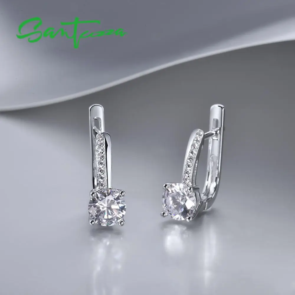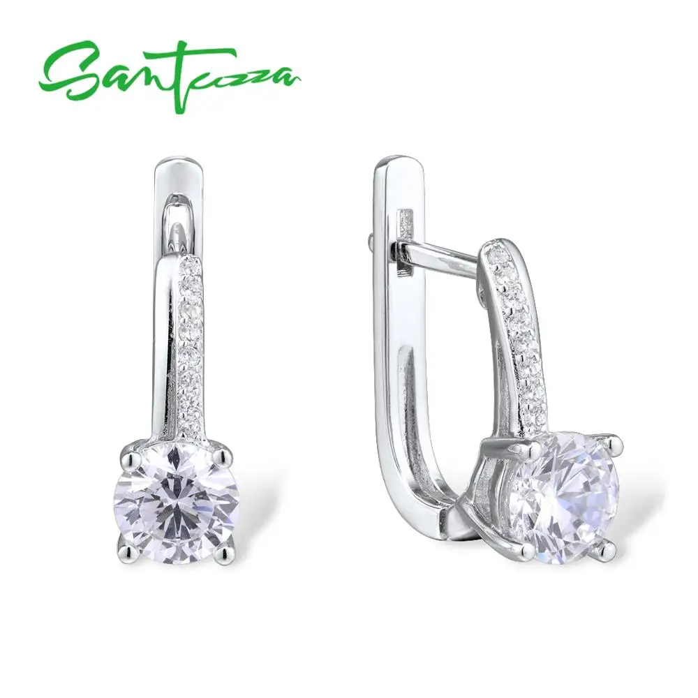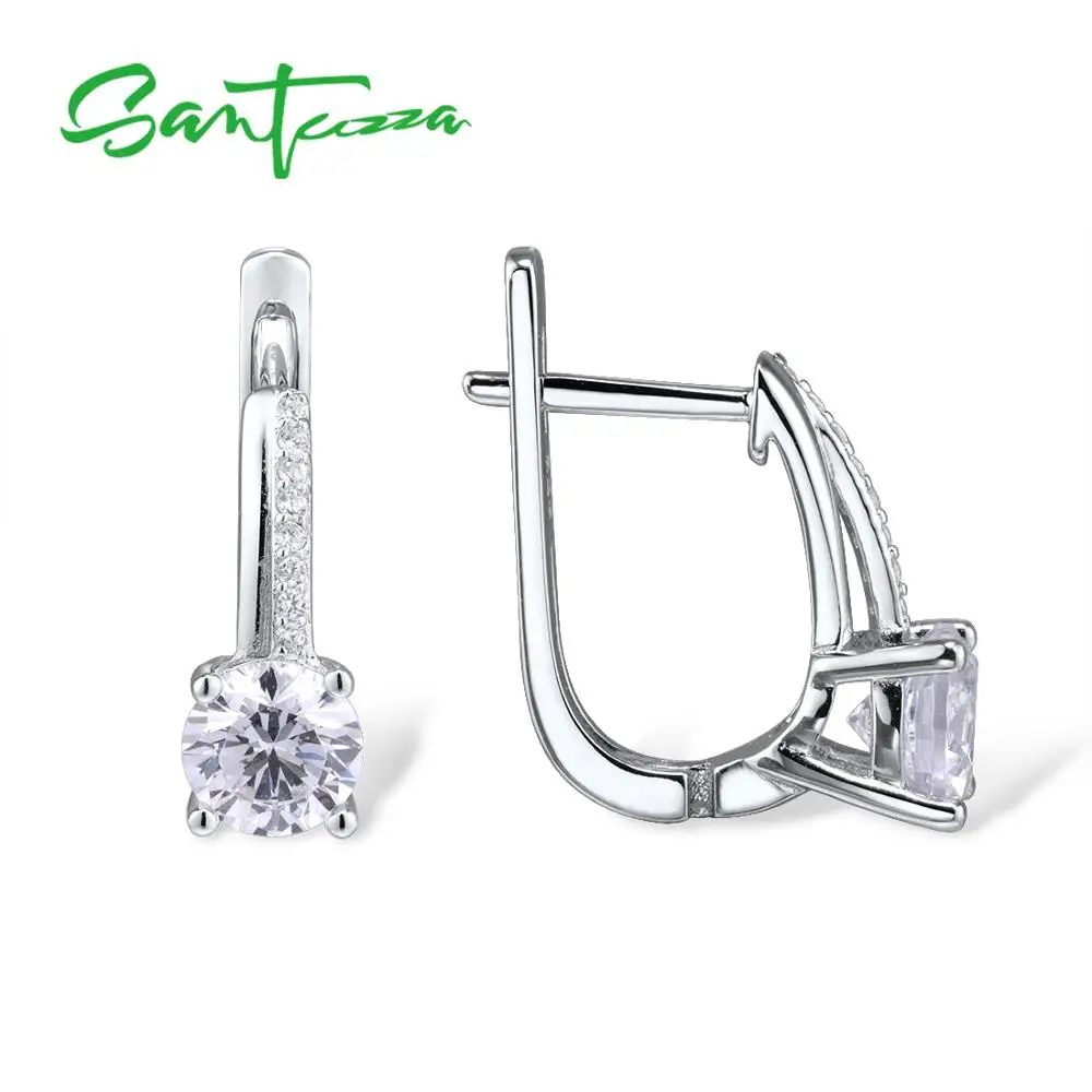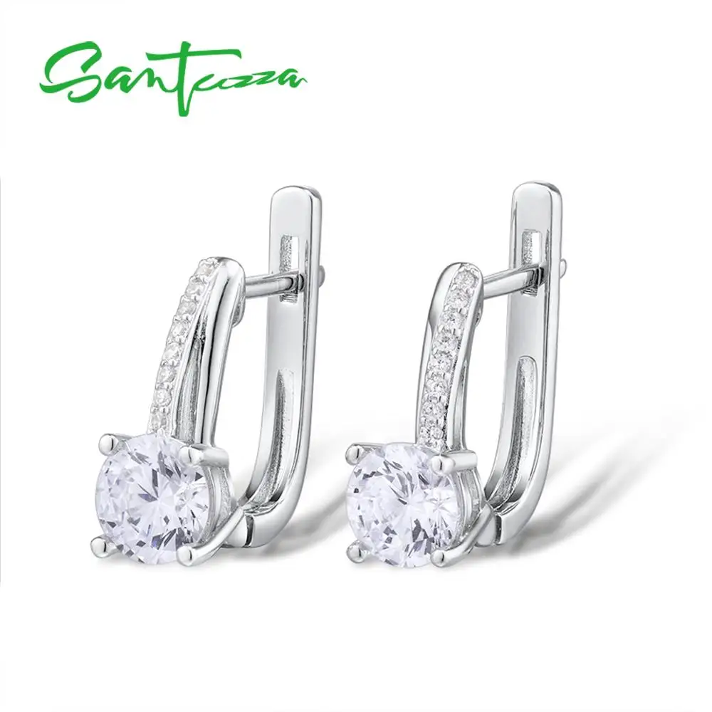 Special Offer Santuzza Zilveren Oorbellen Voor Vrouwen Echt 925 Sterling Zilveren Mousserende Witte Zirconia Серьги Kolczyki Fijne Sieraden Discount 49% Today!