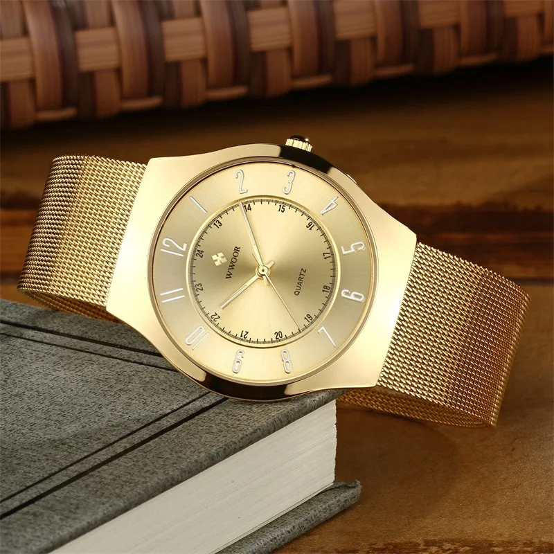 Product Name: Mannen Quartz Jurk Horloge WWOOR Top Merk Luxe Ultra Dunne Waterdichte Sport Horloges Mannen Goud Klok Mannelijke relogio masculino