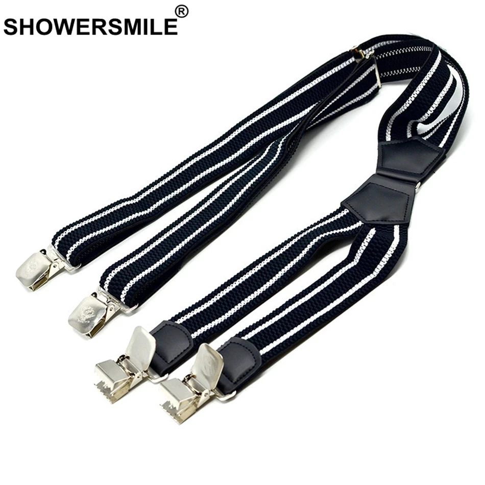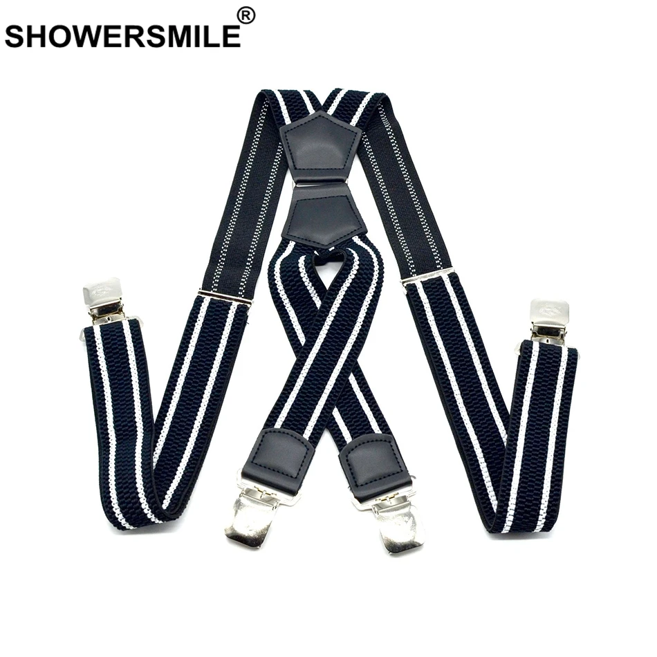 Special Offer SHOWERSMILE Brede Bretels Mannen Patchwork Lederen Heren Broek Riem X Back Black Bretels Riemen 4 Clips Jarretel Mannelijke 4 cm * 120 cm Discount 56% Today!