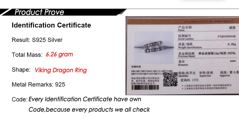Product Name: Real 925 Sterling Zilver Viking Dragon Rune Ring Verstelbare met Viking doos