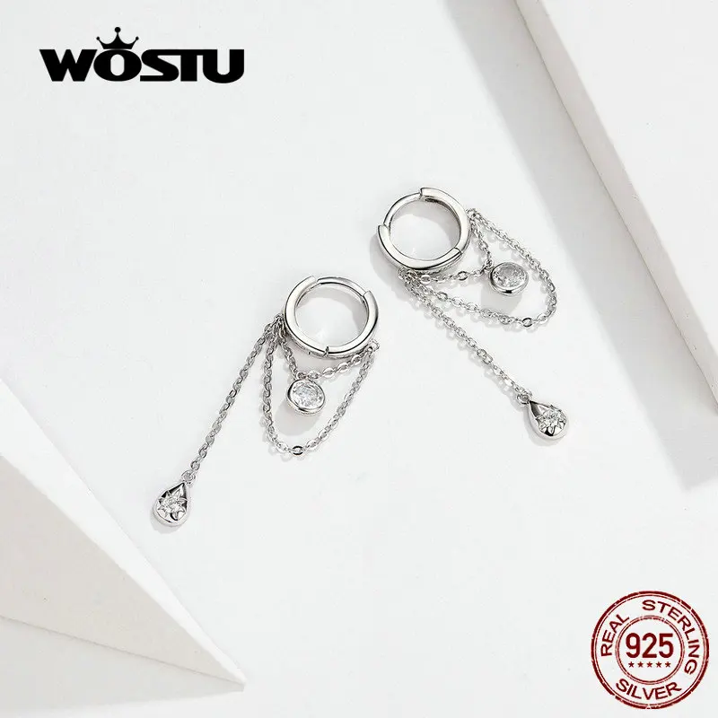 Product Name: WOSTU 925 Sterling Silver Clear Zirkoon Oorbellen Voor Vrouwen Eenvoudige Stijl Oorbellen Maken Mode sieraden Bruiloft CQE638