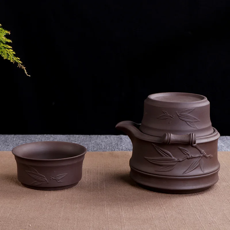 Special Offer Vintage Keramische Paarse Klei Theewaar Set Kantoor Master Theeceremonie Drinkware 1 Theepot 2 Kopjes met 1 Bamboe Lade 1 Reistas Discount 35% Today!