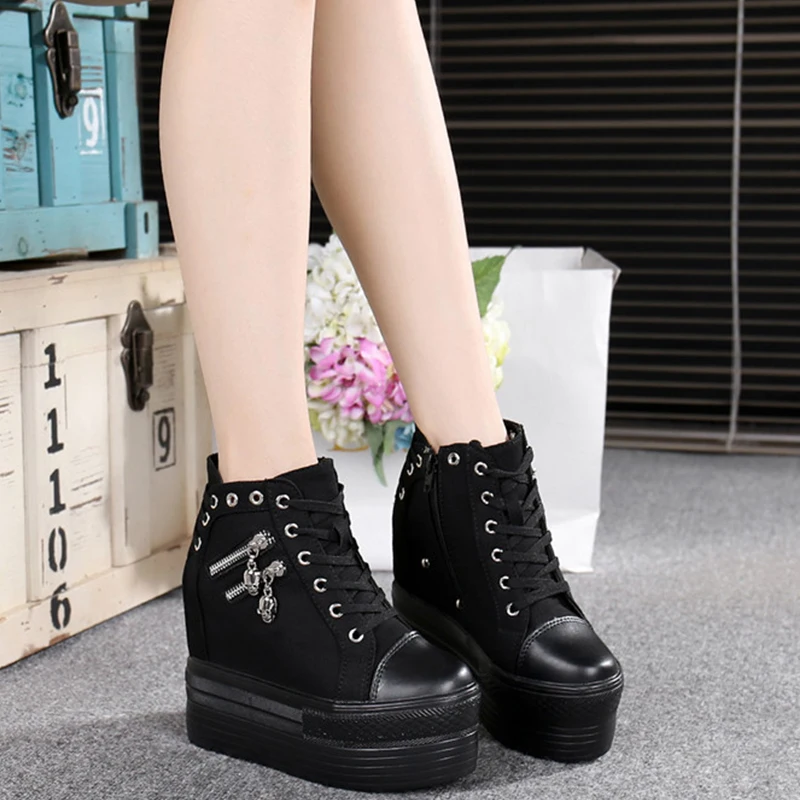 Special Offer 2019 Herfst Vrouwen Casual Schoenen Denim Enkellaars Dames Klassieke Rits Hoogte Toenemende Student Laarzen Zapatos De Mujer Discount 46% Today!