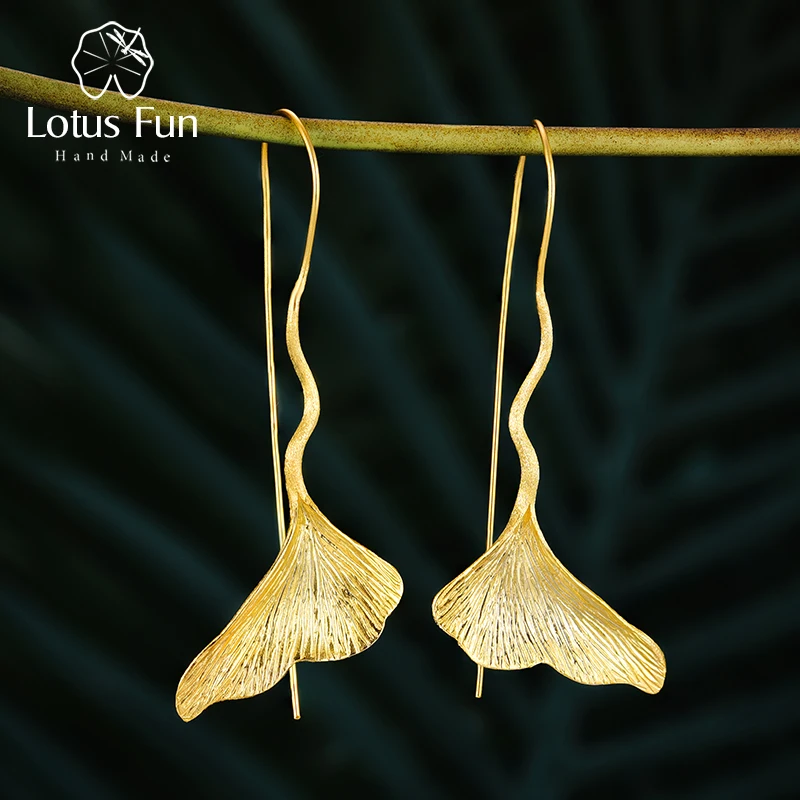 Special Offer Lotus Plezier Echte 925 Sterling Zilveren Oorbellen Designer Fijne Sieraden Vintage 18K Gold Ginkgo Leaf Drop Oorbellen voor Vrouwen brincos Discount 53% Today!