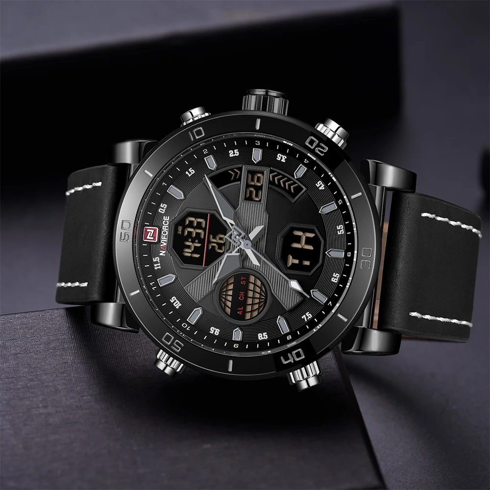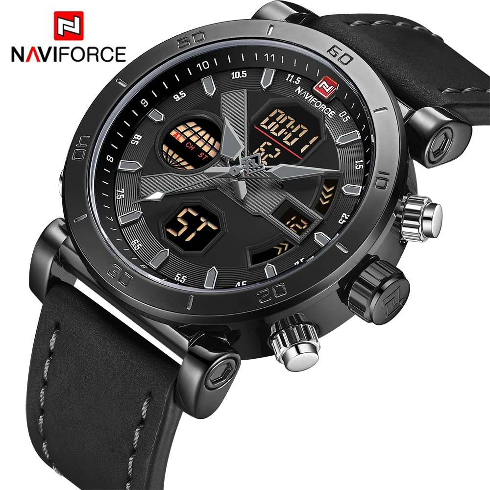 Special Offer NAVIFORCE Merk heren Horloges Sport Militaire Dual Display Lederen Horloge Ronde 3ATM Waterpoof Multifunctionele Horloge Mannelijke Klok Discount 90% Today!