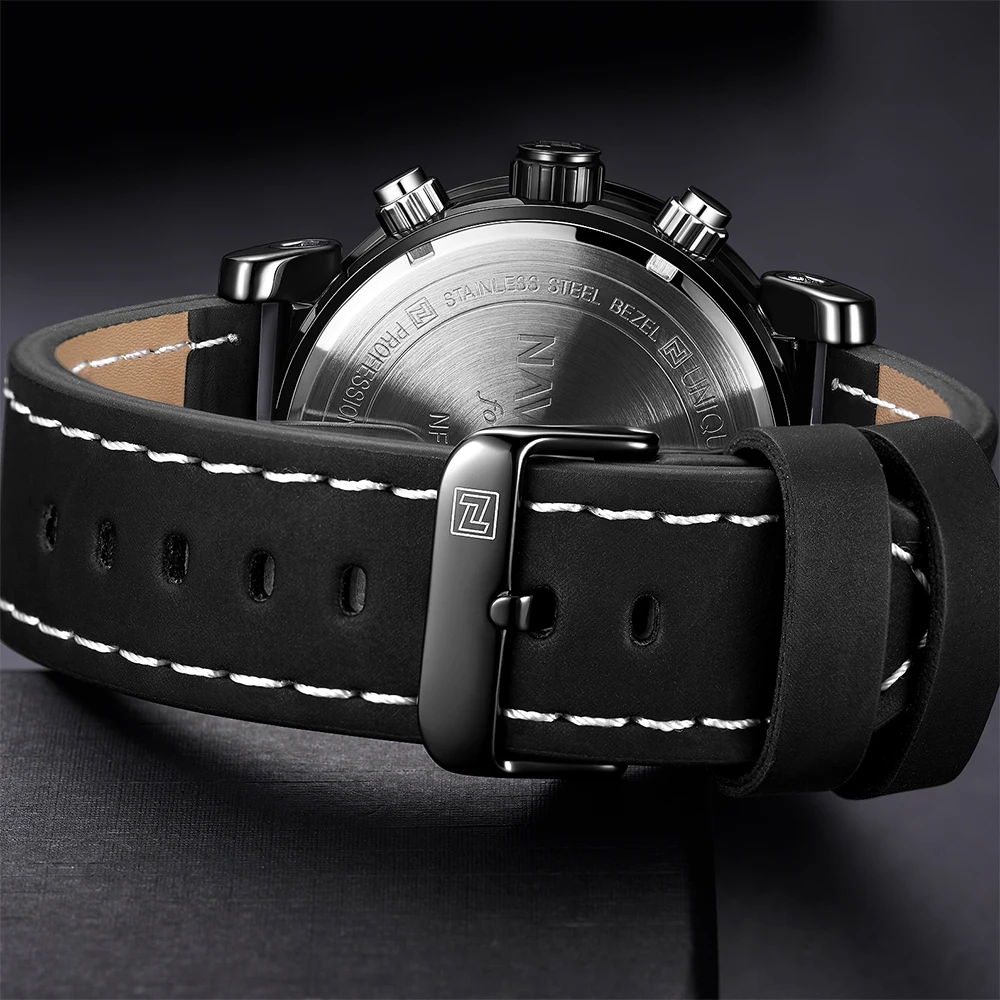 Product Name: NAVIFORCE Merk heren Horloges Sport Militaire Dual Display Lederen Horloge Ronde 3ATM Waterpoof Multifunctionele Horloge Mannelijke Klok