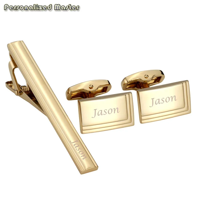 Product Name: Gepersonaliseerde Master Gratis Graveren Custom Rvs Manchetknopen Tie Clip Bar Set voor Mens Shirt Business Huwelijkscadeau 3 stks