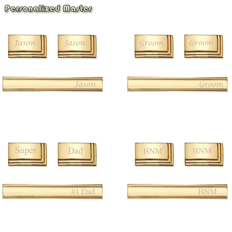Special Offer Gepersonaliseerde Master Gratis Graveren Custom Rvs Manchetknopen Tie Clip Bar Set voor Mens Shirt Business Huwelijkscadeau 3 stks Discount 12% Today!