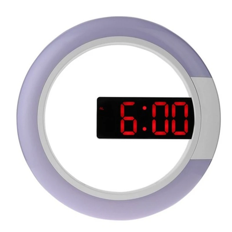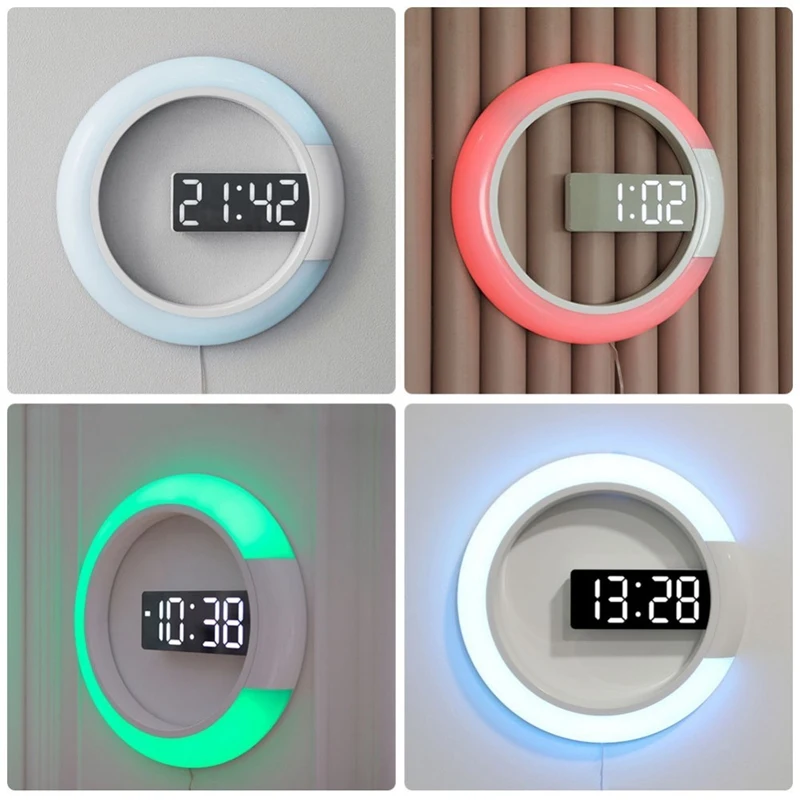 Product Name: Led Spiegel Hollow Wandklokken Home Decor Multifunctionele Alarm Temperatuur Ring Licht Digitale Wandklok