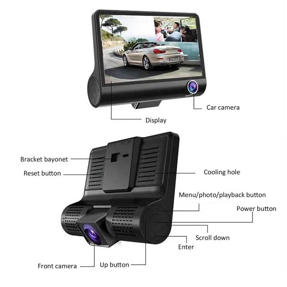 Product Name: D319 Drie Record Hd Nachtzicht Rijden Recorder Verborgen Universele Drie Lens Omkeren Rijden Recorder