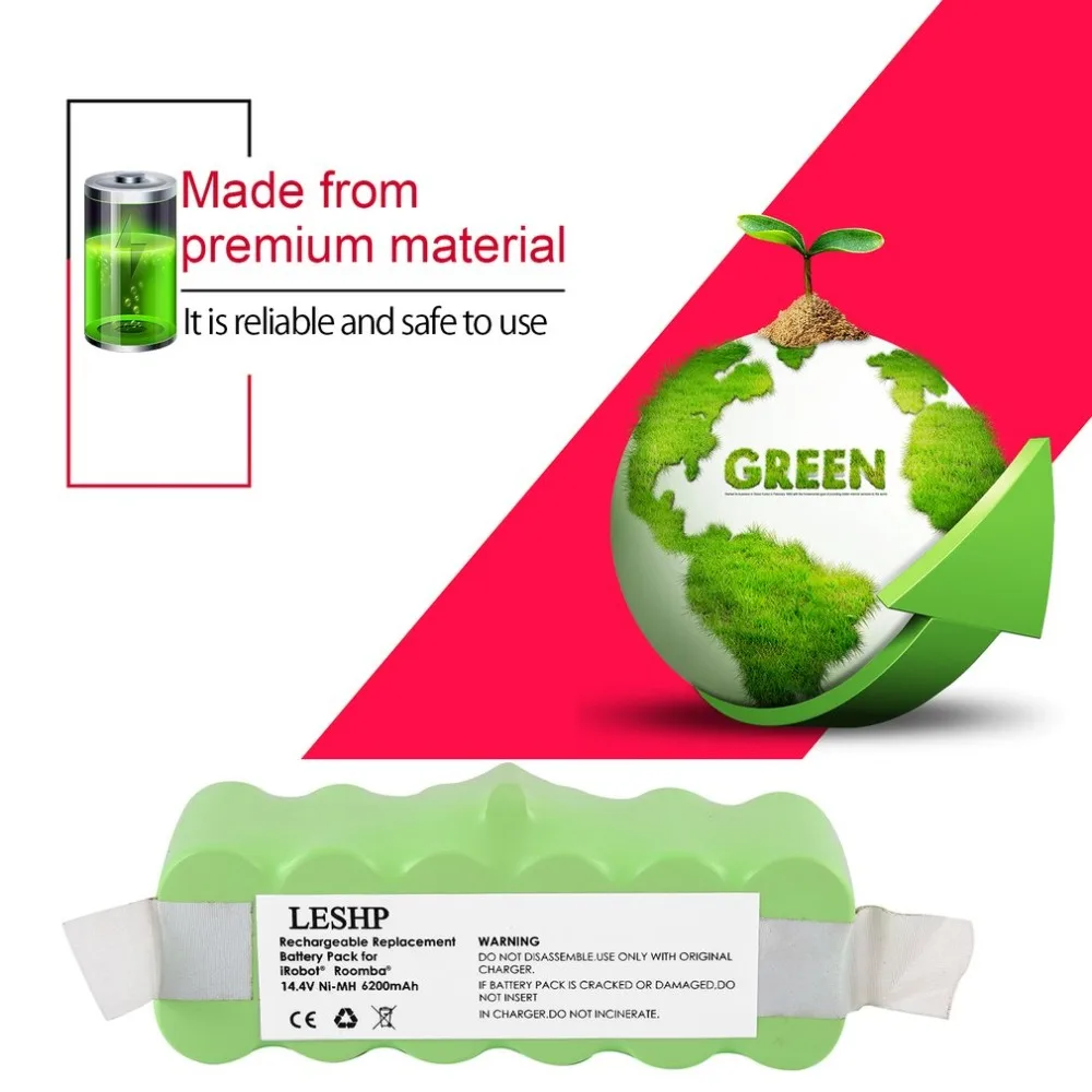 Product Name: 14.4V 6200 5200 Mah Batterij Hoge Capaciteit Ni Mh Batterij Voor Irobot Roomba Stofzuiger 500 600 700 800 serie Veiligheid Bescherming