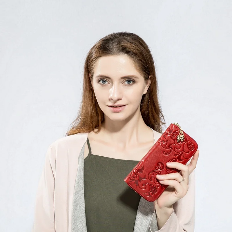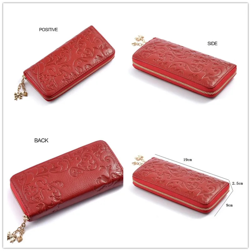 Product Name: Miyahouse Mode Echt Leer Vrouwen Lange Portemonnee Bloem Embossing Vrouwelijke Rits Portemonnee Geld Clips Vrouw Kaarten Purse