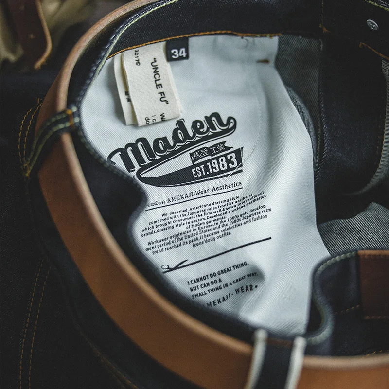 Special Offer Maden Mens 14.5 Oz Classic Slim Straight Fit Raw Jeans Indigo Zelfkant Denim Jeans Discount 0% Today!