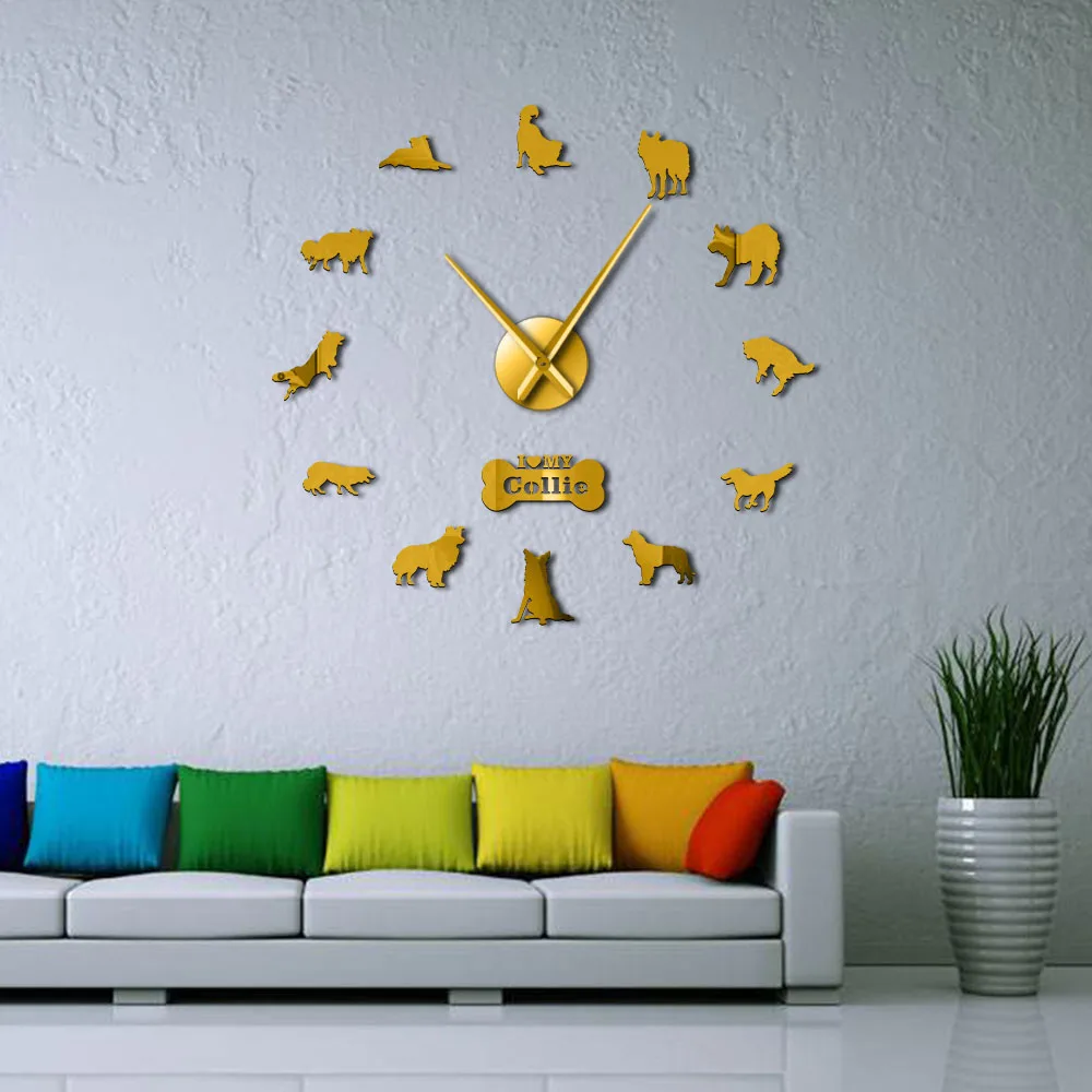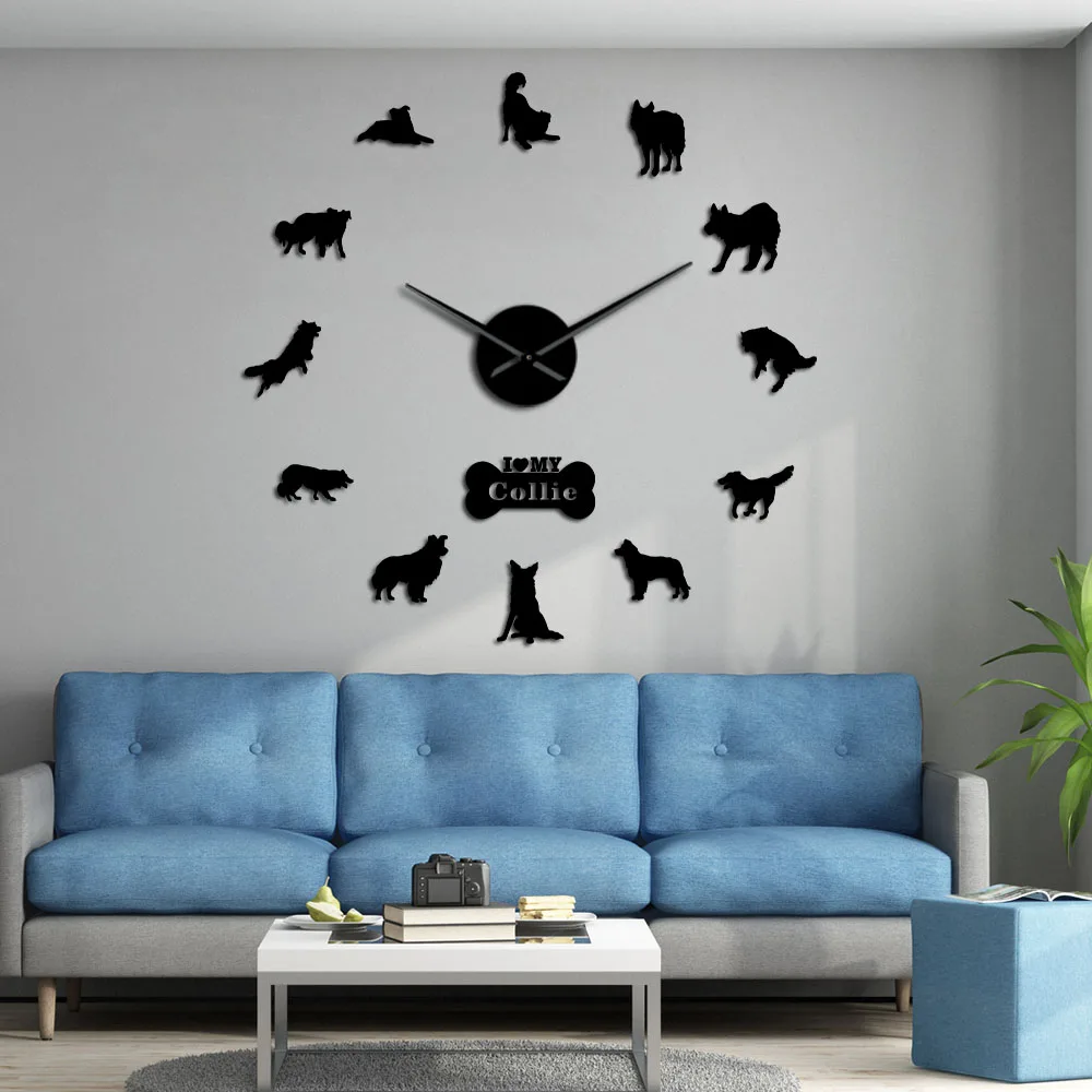 Special Offer Hond Ras Border Collie Silhouet Muursticker Frameloze DIY Giant Wandklok Home Decor Schotse Herdershond Hond Poot Wandklok Discount 10% Today!