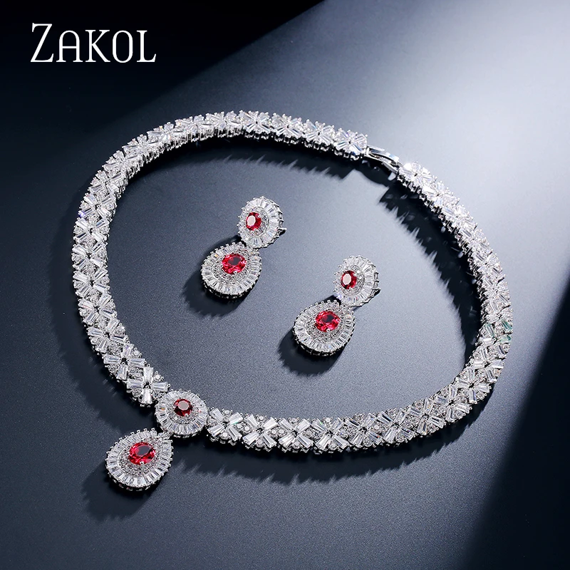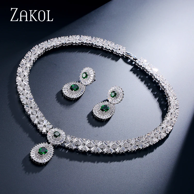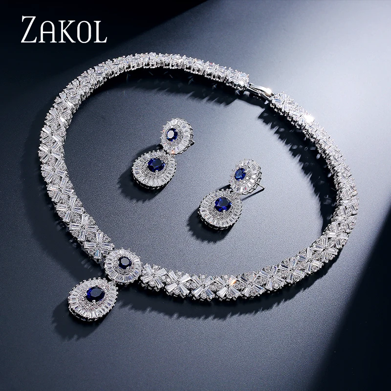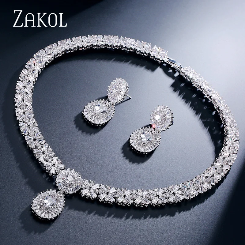 Special Offer Zakol Cz Zirconia Ketting Oorbellen Set Nigeriaanse Bruiloft Afrikaanse Kostuum Grote Vrouwen Sieraden Set Met Clear Crystal Stone FSSP232 Discount 17% Today!