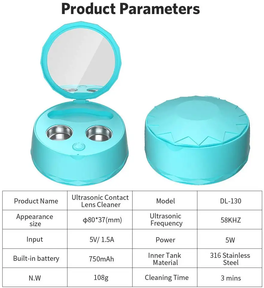 Product Name: Draagbare Ultrasone Contact Lens Cleaner Oplaadbare Auto Sterilisatie Lenzen Contact Lens Case Outdoor Reizen