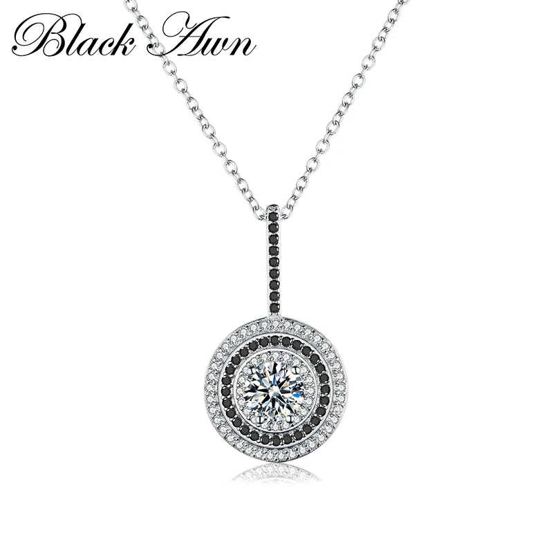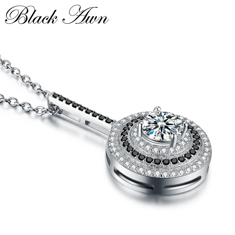 Special Offer [ZWART AWN] Echt 100% 925 Sterling Zilver vrouwen Ketting Fijne Sieraden Ronde Bijoux Zwarte Spinel Hangers Ketting p074 Discount 45% Today!