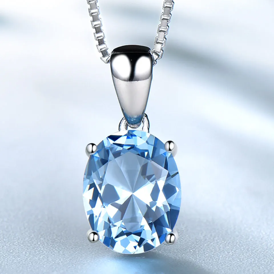 Product Name: UMCHO Sky Blue Topaz Gemstone Bruiloft Sieraden Sets voor Vrouwen 925 Sterling Zilveren Verlovingsringen Ketting Hanger Clip Oorbellen