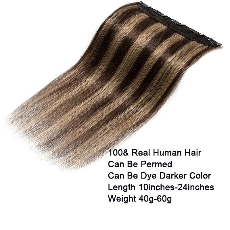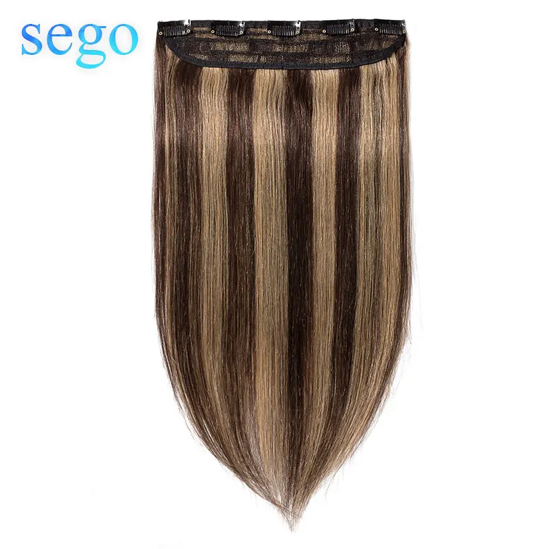 Product Name: Sego 10 \" 24\" Clip In Een Stuk 100% Real Human Hair Extension 1 P w 5 Clips Non Remy Stuk Rechte Indian Haar 40G 60G
