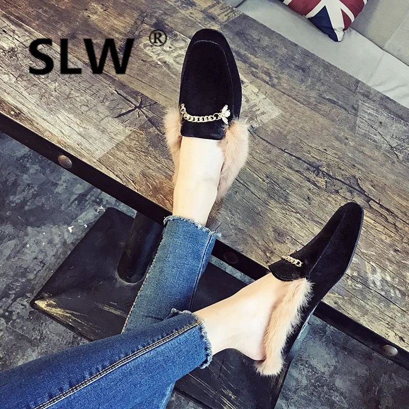 Product Name: Rome gesloten teen Hoge Vreemde Stijl muilezels met bont PU grappig slipper vrouwen Echt Lederen Slides loafer Rubber gladiator Super