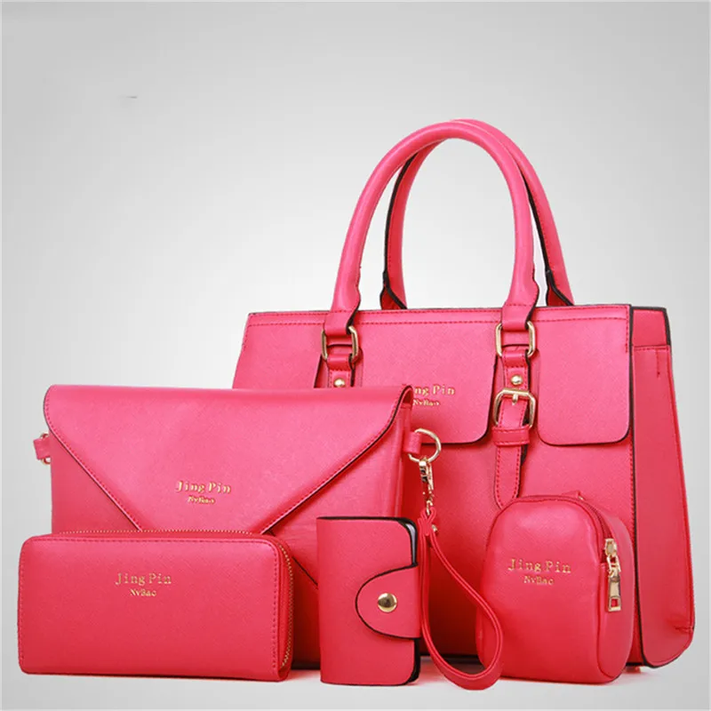 Product Name: Mode Vrouwen 5 Stuk set Handtas Portemonnee Set Klassieke Messenger Bag Imitatie Lederen Schoudertas 6 Kleuren Dames Pu Tas ER966372
