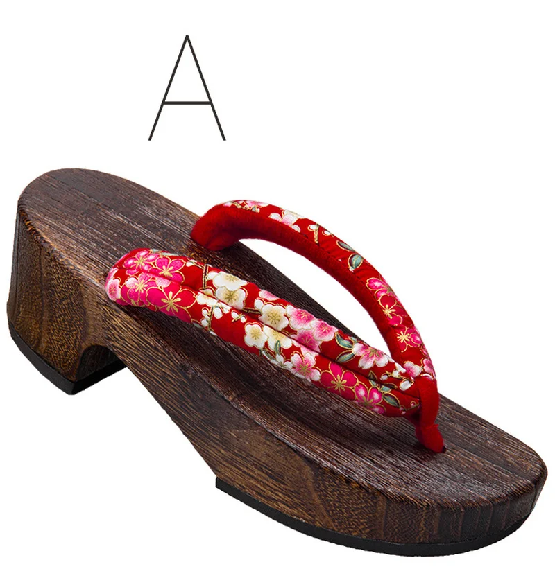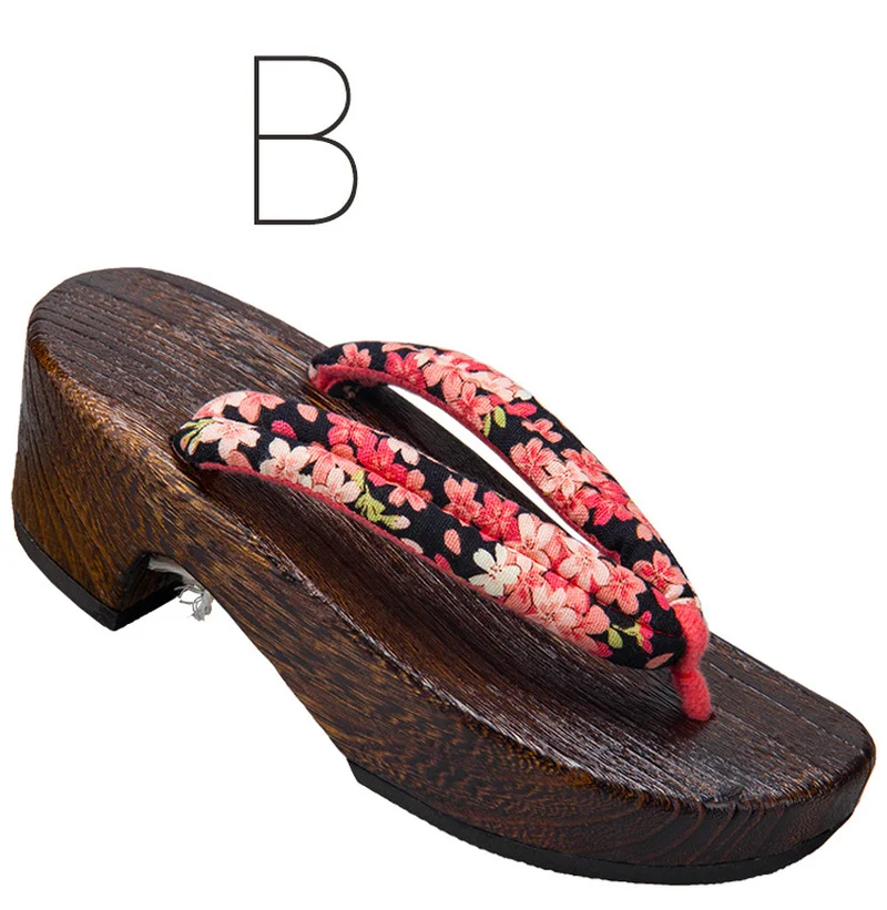 Product Name: Vrouwen Anime Cosplay Japanse Slippers Traditionele Kimono Houten Schoenen Oosterse Geta Klompen Bloemen Sandalen Sauna Spa Teen Slipper