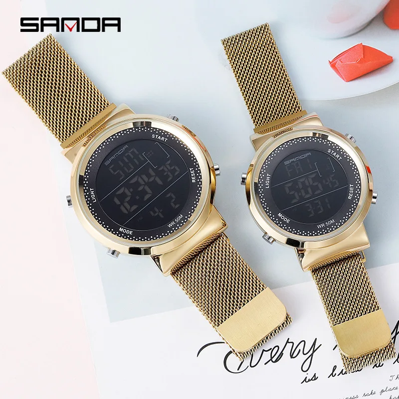 Special Offer Mode Rose Goud Vrouwen Mannen Magnetische Digitale Horloges Luxe Rvs LED Elektronische Horloges Waterdicht Sport Klok Discount 40% Today!