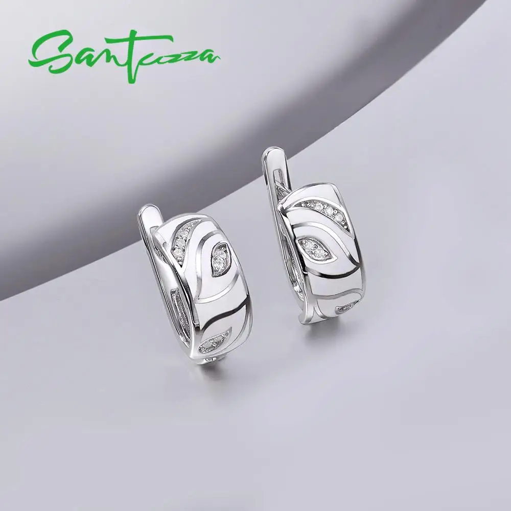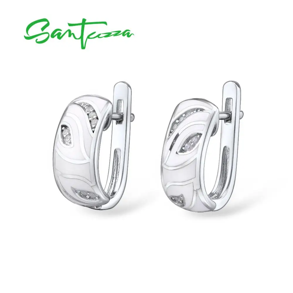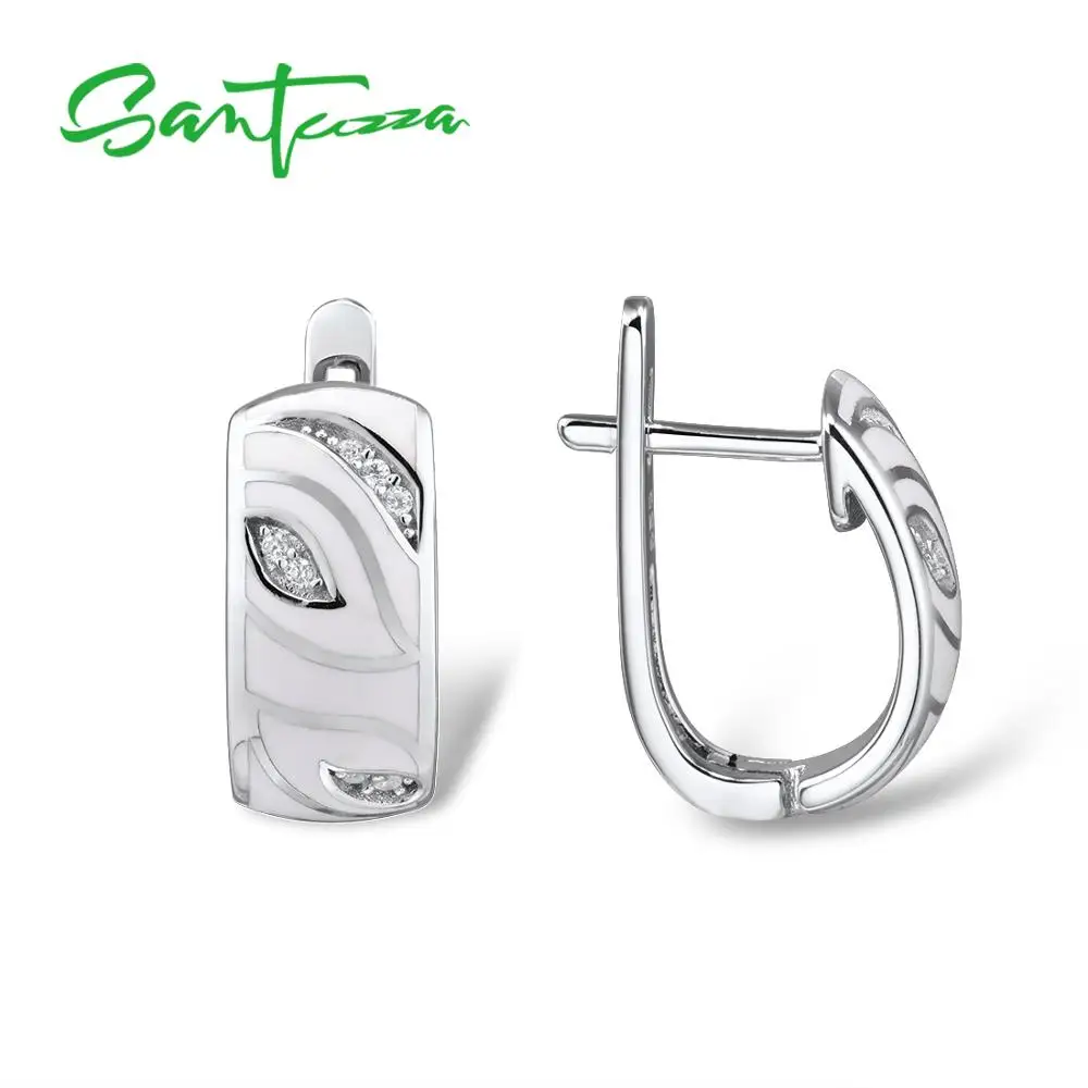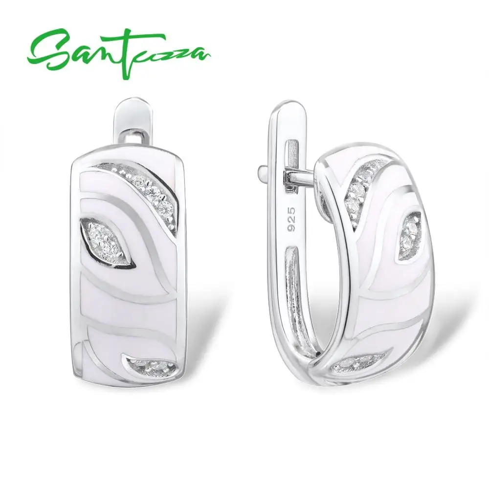 Special Offer Santuzza Zilveren Oorbellen Voor Vrouwen Echt 925 Sterling Zilver Wit Verlaat Fonkelende Cz Elegante Fijne Sieraden Handgemaakte Emaille Discount 49% Today!