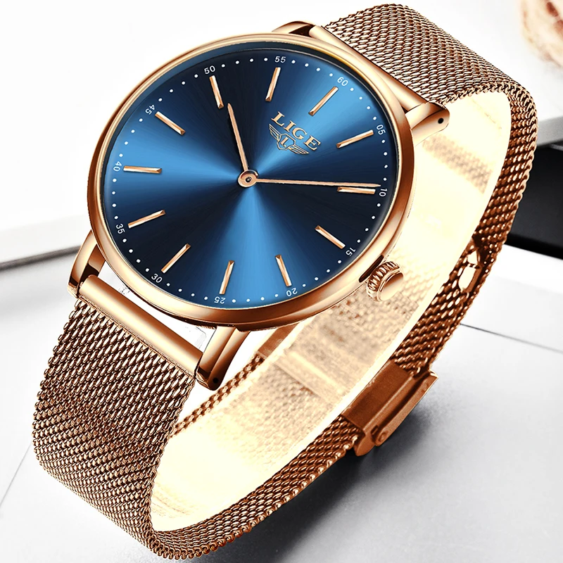 Product Name: LUIK Super Slim Rose Gold Mesh Roestvrij Staal Horloges Vrouwen Top Brand Luxe Casual Klok Dames Polshorloge Dame Reloj mujer